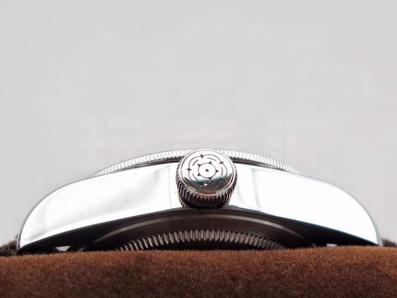 最需要仔细看的就是表盘,包括表盘上的字符,还有时、分和秒针是否电镀犹如镜面,表盘上的字母和分线应该是又黑又亮才对,所有的假表在这点上全都做不好、做不像。