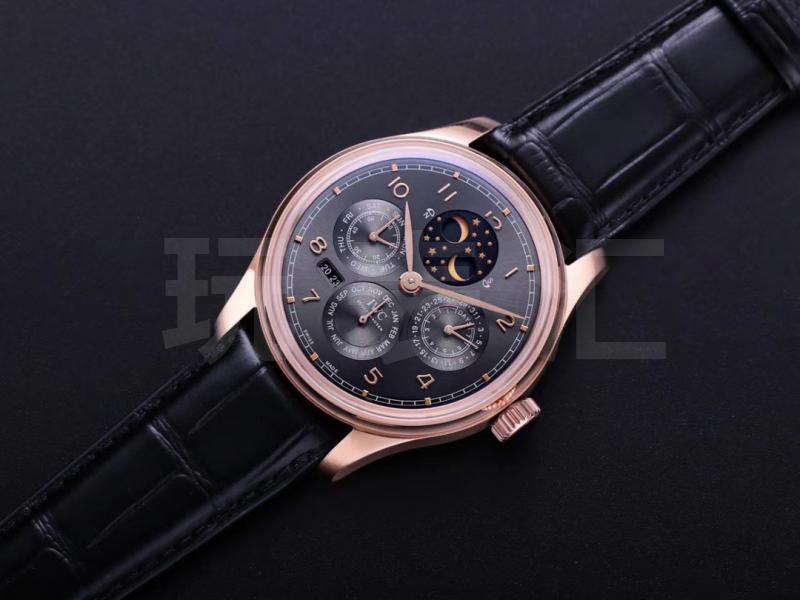 V9万国葡萄牙系列真万年历,复刻界第一支万年历万国,采用进口大精工作为基础机芯升级为52610机芯副本,不但实现了万年历大部分功能而且走时稳定,返修率极低,这是复刻市场少有的耐操性复杂功能腕表。
