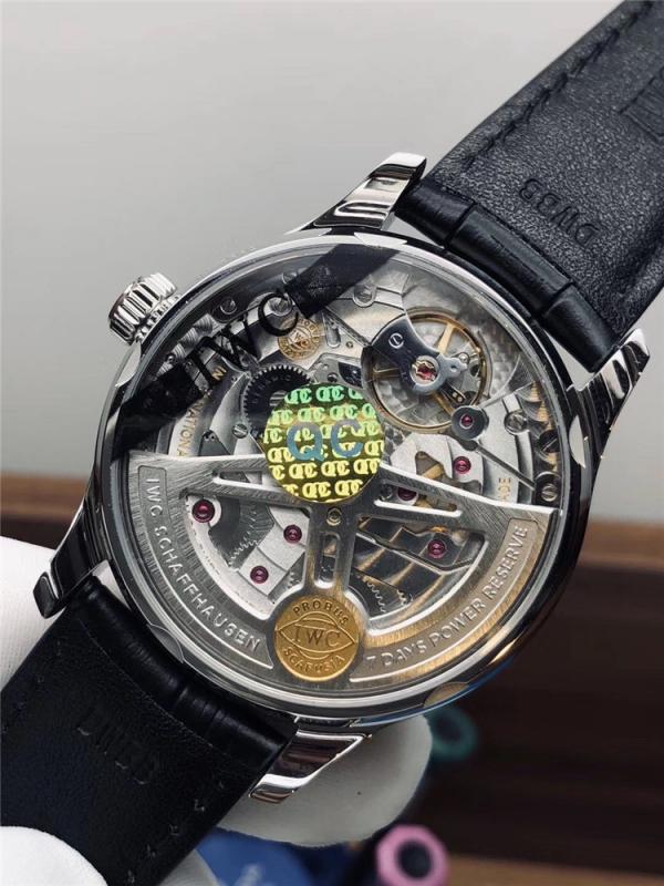 ZF厂葡七V5做的是新款的IW500705机芯是52010,42.3*14.5的尺寸,表盘内有两个小盘,3点钟位是动力储备槽显示,9点钟位置是独立的小秒盘并不是计时盘,分钟刻度位及阿拉伯数字显示,嵌入式字体,立体感强,读表清晰方便,但给人的感觉还是非常简约的,指针和阿拉伯数字刻度都是烤蓝钢,正面看去指针颜色呈黑色,反光去看呈现蓝色,这是烤蓝钢的特点。ZF厂葡七工艺到位,不过不能否认日历是这款复刻表的一个痛点,存在日历偏的问题,需要商家仔细检查选择,才能拿到优质产品。