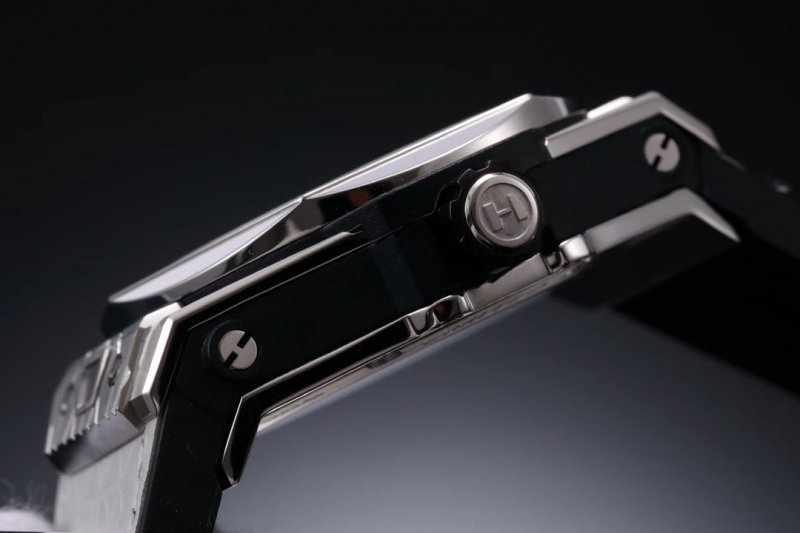TMF为达到和正品一致的效果:全程CNC打磨 拆解原装开模,侧边塑胶黑色片。所有螺丝均为针螺丝以及字母螺丝配合而成。镜面采用顶级AIR双层无色镀膜蓝宝石镜面,比一般的蓝宝石镜面通透太多太多,非常符合宇舶倡导的品牌理念"融合的艺术"。表盘为黑色喷砂 ,CNC加工内影。