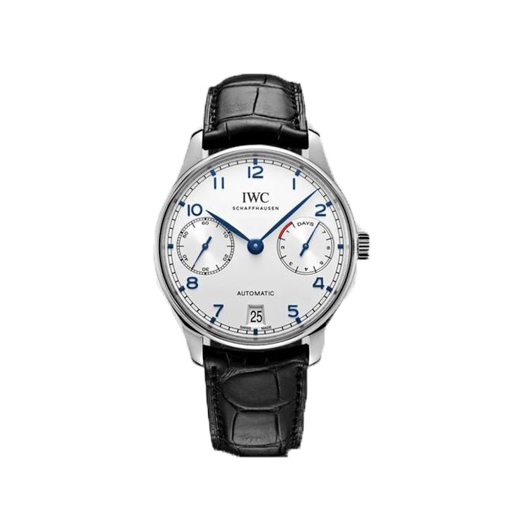 葡萄牙七日链腕表整体采用精钢材质锻造,表径尺寸42mm,中规中矩的尺寸适合亚洲手腕佩戴,精钢材质搭配鳄鱼皮表带,轻便简约很舒适,冬天就是需要贴合皮肤的皮表带,葡七整体的颜值可谓非常高,而且系列和颜色也很多,白面蓝针、钢针、黑面钢针、还有金色表壳,每一款颜色都非常有自己的特点,本期这款更为简约,白面钢针银色阿拉伯数字刻度,每个细节处ZF都面面俱到,整体来说还是非常不错的。