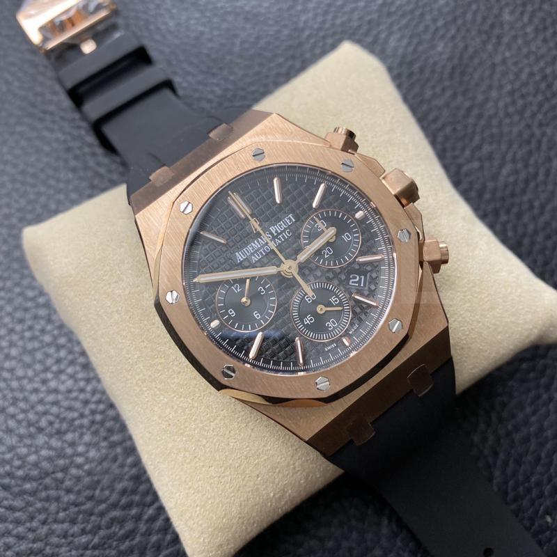 爱彼的橡树系列典型的八角型外圈,金色精钢打造的外圈呈现在我们面前。很多地方的抛光做得相当到位,边角外还会显示高光,圆润又色彩鲜艳是这款XF厂皇家橡树的特点。再佐以黑色的表盘,整块腕表的风格就从这两个元素中就显示出来,大气奢侈。
