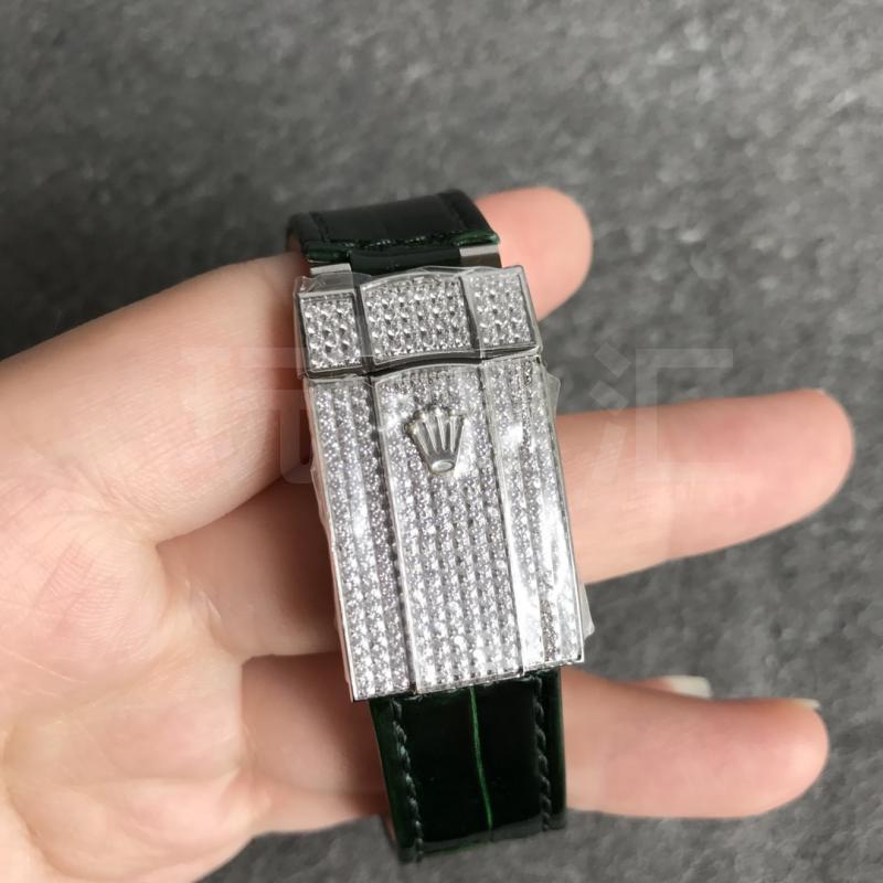 宝石镜面!字面颜色更细腻做出了与正品一致的视觉效果,防反光凸透式放大日历窗,日历处大小还原了原装的感觉, 在金和钻之间,还有一朵绿,真的是点缀的非常美。