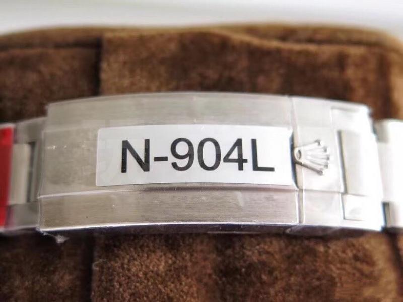关于表带这里,以往的一个版本是316精钢,目前全面升级为904钢,扣子底部有一张大大的904精钢贴纸,貌似消费者都对904精钢特别青睐,然后小盘特别说明一下:这个镶钻版本绿水鬼暂时没有多个版本出现,就是搭配仅有:904L精钢+2836机。
