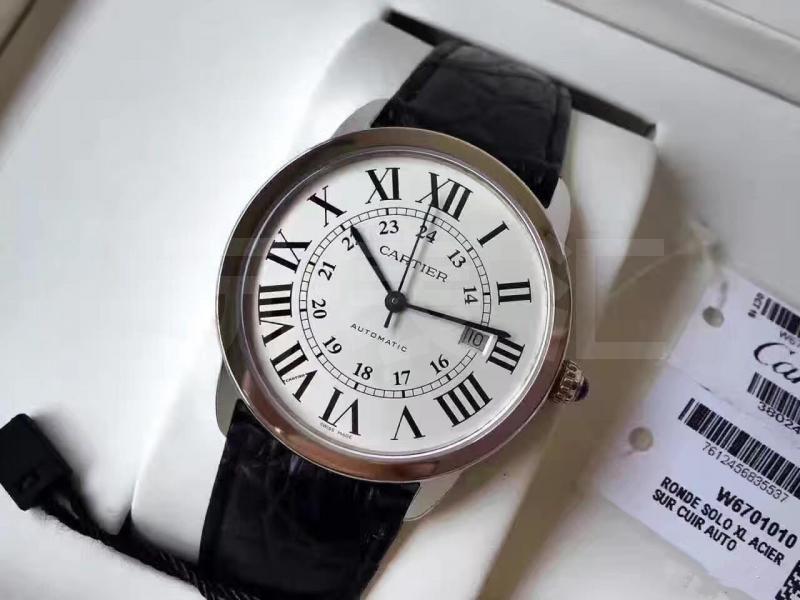 本期玩表汇小编给大家介绍一款比较少见的卡地亚腕表,这款腕表叫伦敦系列型号为w6701010官方售价26000目前由tw工厂复刻,同时也升级到了v2版,这款表主要的特点是超薄,最薄的地方可以的厚度达到6.4mm 最厚的地方达到8.6mm 刨去贴膜后可以达到8.36mm 保持与原装一致,直径为41.9和原装也是一致的。