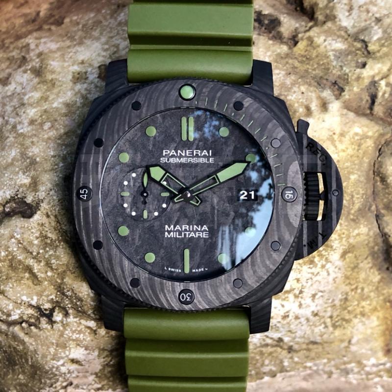 VS厂沛纳海961整壳套采用的是真规格碳纤维材料,这样的材质在VS厂这已经具有充足的功底了,很多同款出得都不错。整表的纹路跟手感层次分明,把玩性超强47MM大小的盘面让整表呈现得更加大气具有动感,戴上它直面极限,突破自我,尽显硬朗帅气的军人风范。