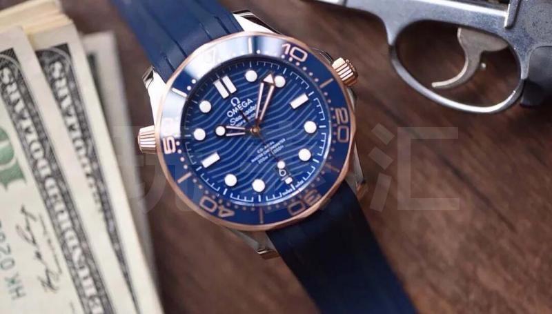 VS欧米茄海马三百300米间玫瑰金蓝盘