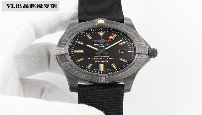 VL厂出品,超级复刻!!百年灵复仇者黑鸟侦查机横空出世,钛金属表壳,真空电镀永不掉色,尺寸44mm同正品一模一样!!蓝宝石镜面!!搭载ETA2824机芯稳定性超强!